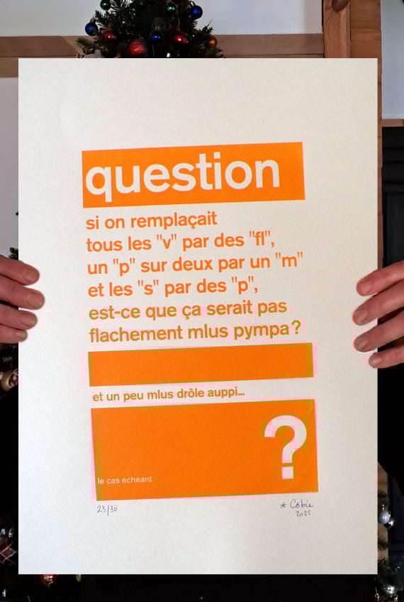 Sérigraphie 42 x 29,7 cm (A3) sur joli papier épais.